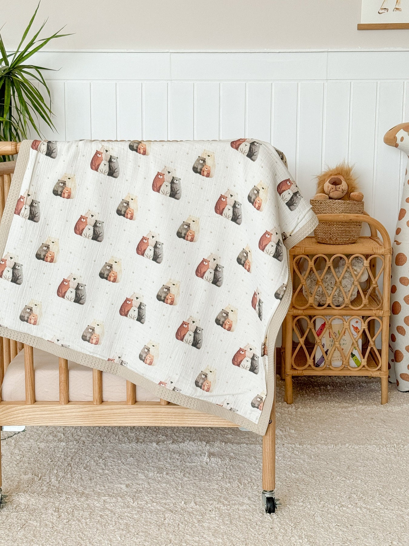 Soft, breathable cotton baby blanket for swaddling, napping, or play.