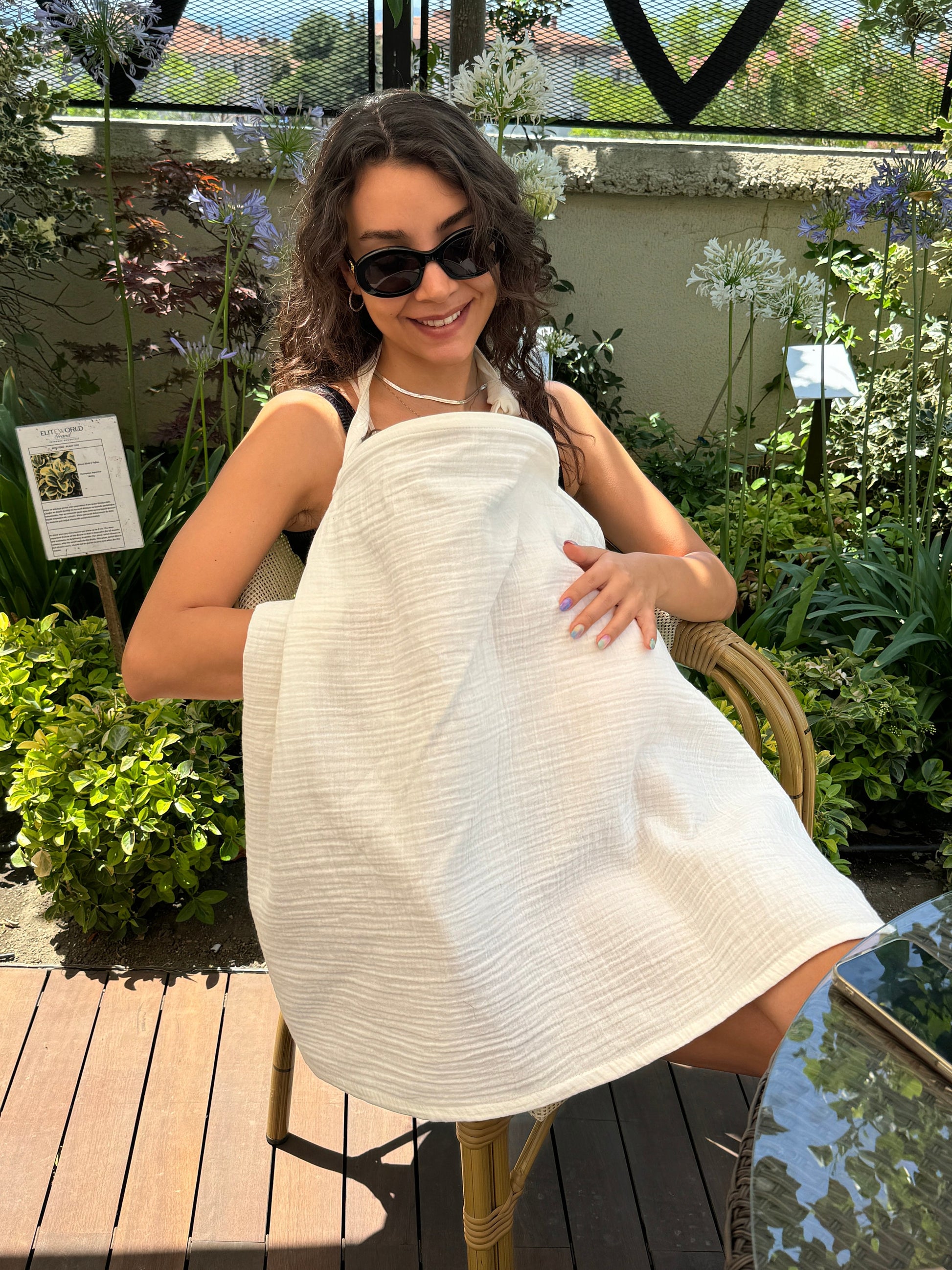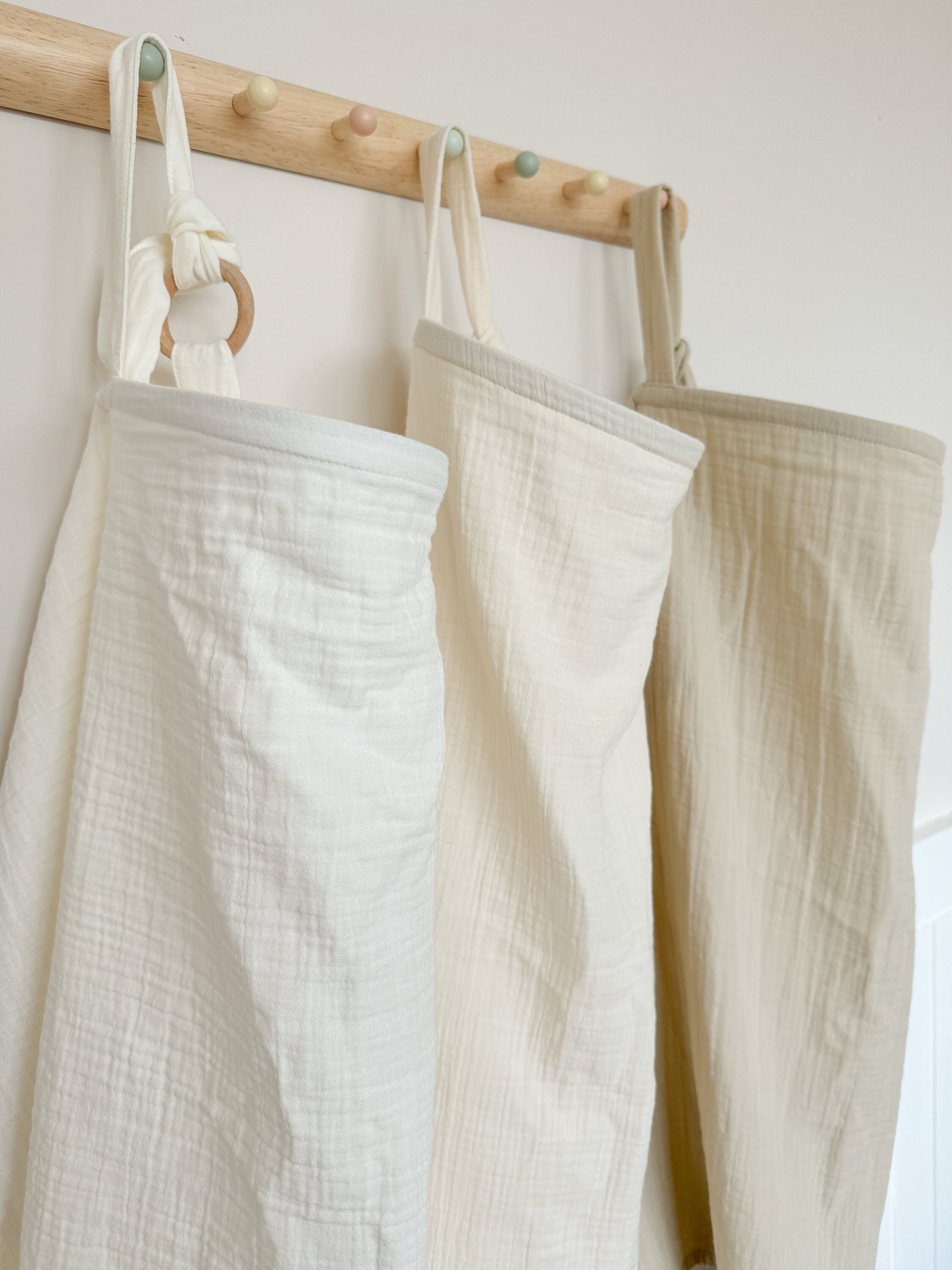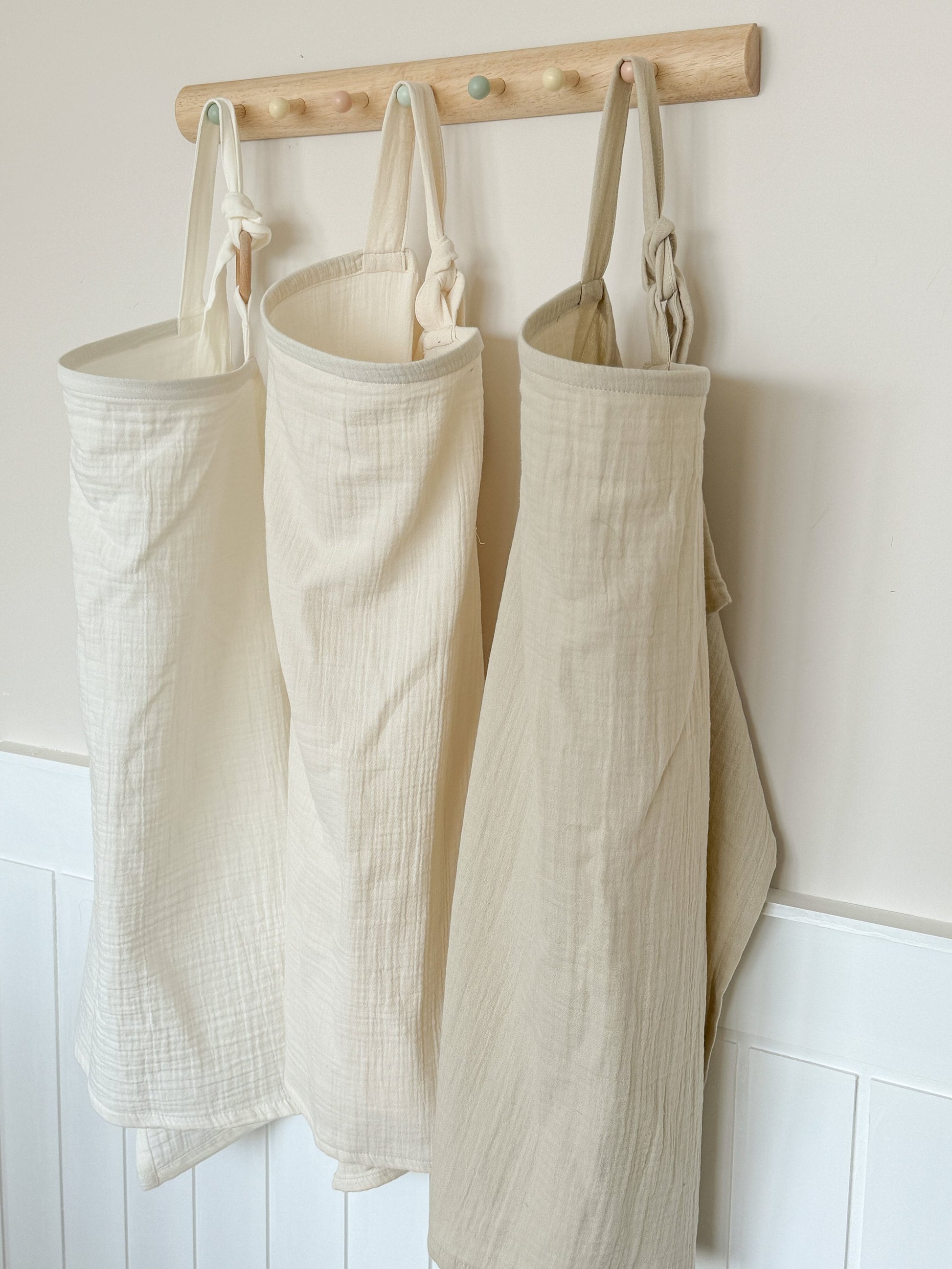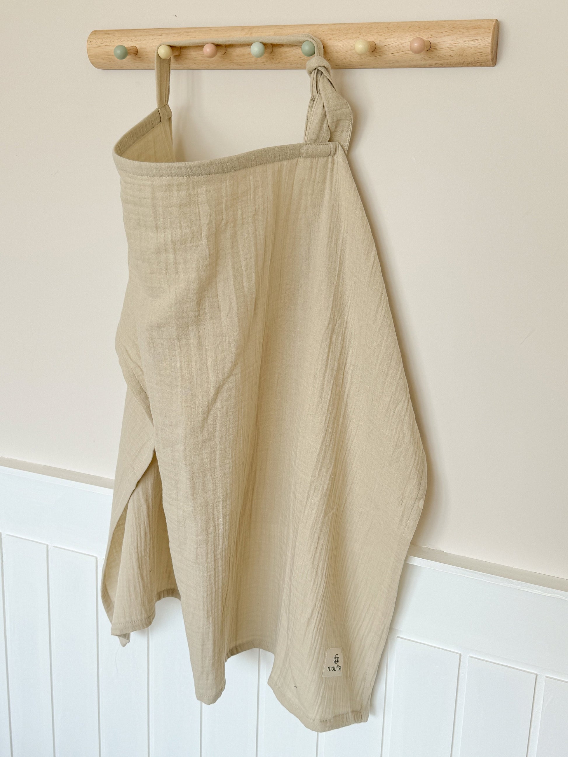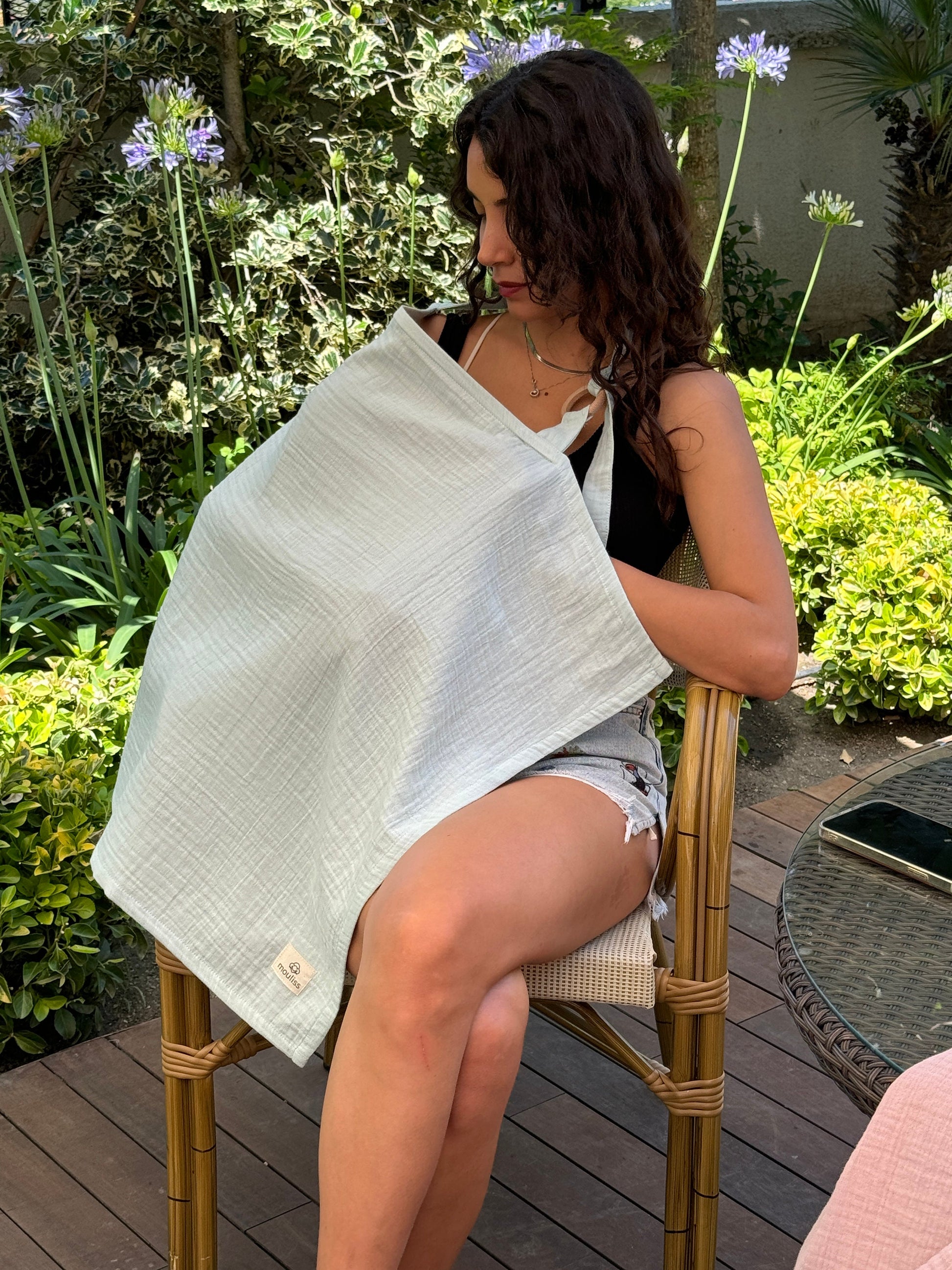 • Made from 100% cotton double gauze muslin, offering a lightweight, breathable layer for privacy and comfort while nursing.